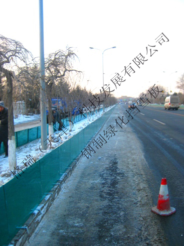 2013年9月吉林長春凈月高新區園林綠化處訂購我司專利產品--鋼制綠化擋雪板,材質為0.8mm優質鞍鋼鍍鋅板,表面進行優質耐候粉末靜電噴涂二次防腐處理制成,噴涂顏色為國標RAL6026綠色。目前產品已安裝完畢并投入使用并得到客戶的認可與好評。